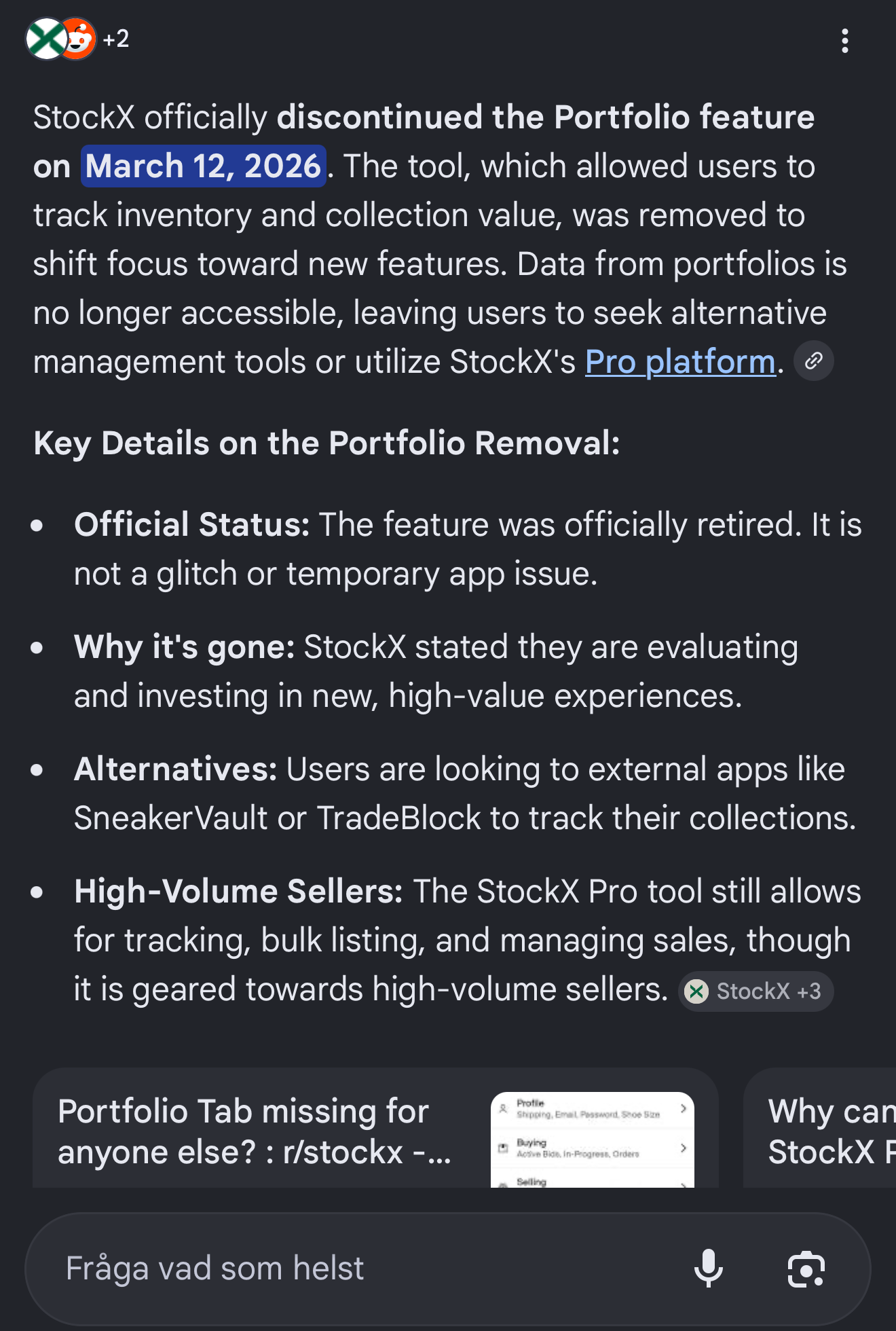 Jag googlar det och det visar sig att StockX har raderat det helt, för alla, utan förvarning.. Utan att ge oss chansen att ladda ner det, kolla det..